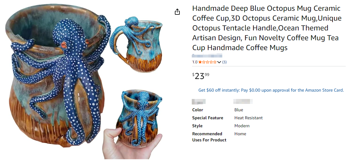 Gulcin Afkan是一位土耳其陶瓷艺术家,其创作的蓝色章鱼杯等作品已两次成为美国TRO(临时限制令)诉讼的目标。首次案件(案号25-cv-12709)于2025年10月17日由David律所发起,而第二次案件(案号25-cv-14837)则于2025年12月8日提交,诉由均为版权侵权。这显示品牌方在约两个月内连续发起维权,且均通过擅长跨境电商知识产权诉讼的David律所代理。