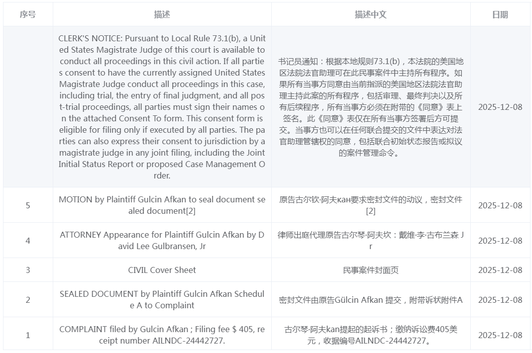 第一次案件(案号25-cv-12709)原告在起诉后迅速主动撤诉的案例。案件已正式关闭,但原告因撤诉方式为“不予偏见”,为自己保留了重启诉讼的可能性,果不其然,2025年12月8日Gulcin Afkan再次委托David Gulbransen律所发起TRO立案,原告版权涉及Gulcin陶瓷马克杯的设计、图片等创意表达,目前该案件处于前期立案阶段,暂未获批TRO临时限制令。【拾贝TRO平台提醒】请各位卖家立即检查产品图片、包装及Listing描述中是否使用了与“Gulcin陶瓷马克杯”相同或高度近似的文字、图案或设计元素,避免潜在侵权风险。